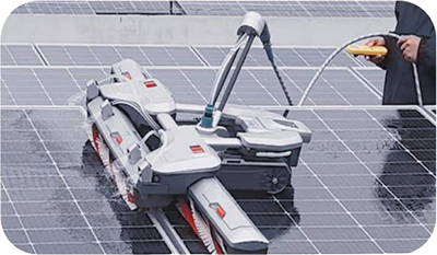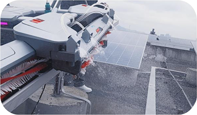 يستخدم روبوت السمك الطائر أربع فوهات للرش مباشرة بالقرب من الأرض ويستخدم ضغط الماء لإجراء إزالة أولية للبقع على سطح اللوحة الكهروضوئية. يمكن لصندوق فصل الماء الطيني أن يزيل الأوساخ الموجودة على الشعيرات بسرعة، مما يقلل التلوث الثانوي أثناء عملية التنظيف.