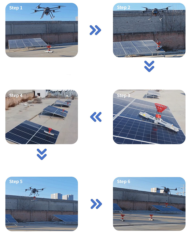 يمكن لـ "نظام التنظيف الكهروضوئي الذكي بدون طيار على ارتفاعات منخفضة" الذي تم إطلاقه حديثًا إجراء تنظيف وفحص واسع النطاق للوحدات الكهروضوئية، وتحقيق المراقبة الذكية، والتنظيف العلمي، والإدارة المرئية، والتشغيل بدون طيار لمحطات الطاقة الكهروضوئية.