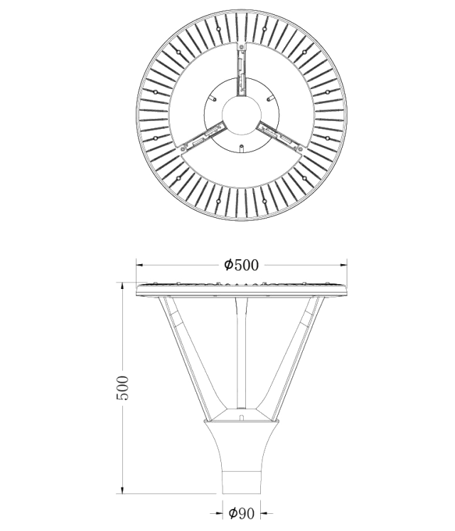 تم تصميم مصباح الحديقة هذا لأحجام محددة، بقياس 500 مم × 500 مم × 500 مم، مع نطاق طاقة من 30 وات إلى 60 وات. المصباح مصنوع من الألومنيوم المصبوب، مع طلاء بلاستيكي مضاد للتآكل تم رشه إلكتروستاتيكيًا. إنها مناسبة للمواقع ذات مسافات التثبيت الثابتة وقيود الارتفاع، مثل الممرات الضيقة أو المناطق منخفضة الارتفاع.