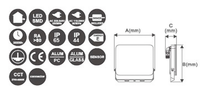الصفحة الرئيسية / معلومات عنا / الإضاءة الشمسية / مصابيح LED خارجية / 10وات – 100وات، 800لومن – 8000لومن لمبة ليد فيضان